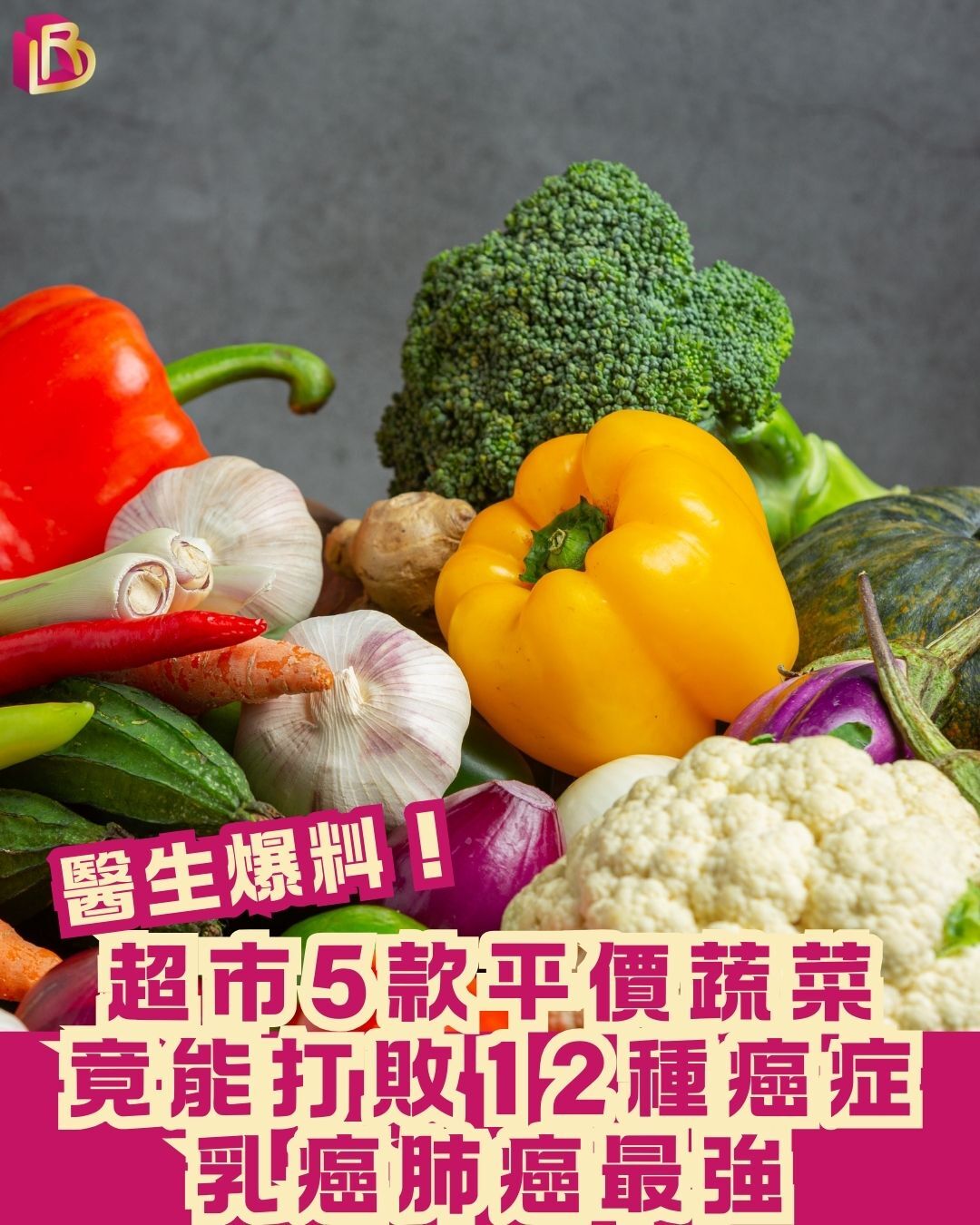 功能醫學醫師張適恆最近分享,日常最容易買到的5款蔬菜,富含獨特植化素,能幫助抑制腫瘤生長、預防乳癌、肺癌、大腸癌等12種癌症!