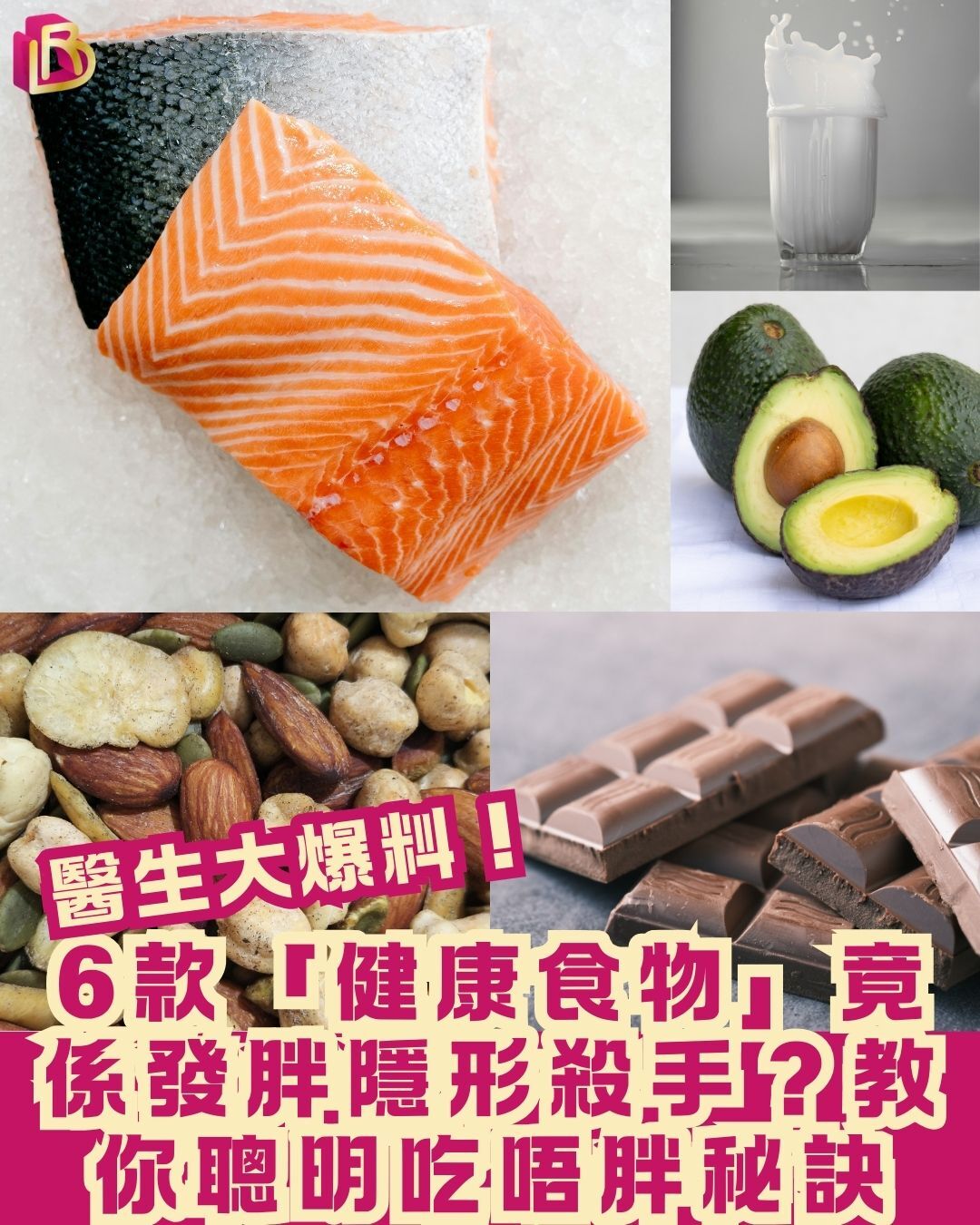 「健康食物」都可能令人越食越肥!醫生蔡明劼指出,6款我哋以為超健康嘅食物——牛油果、堅果、黑巧克力(85%以上)、全脂鮮奶、三文魚、全蛋,其實屬於「高營養密度」食物,雖然富含優質脂肪、蛋白質同纖維,但熱量超高,一唔小心就超標啦!